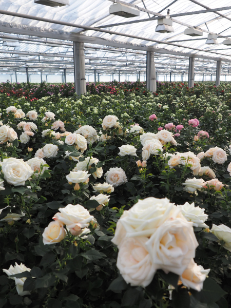 Vores roser produceres så køligt som muligt, og der anvendes minimum brug af kunstigt lys for at minimere brugen af energi i produktionen.
