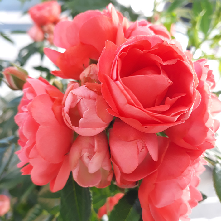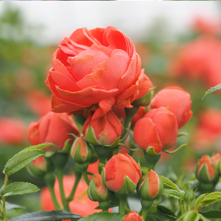 Blomst: Smuk, fyldt, orange, i klynger.