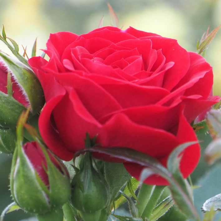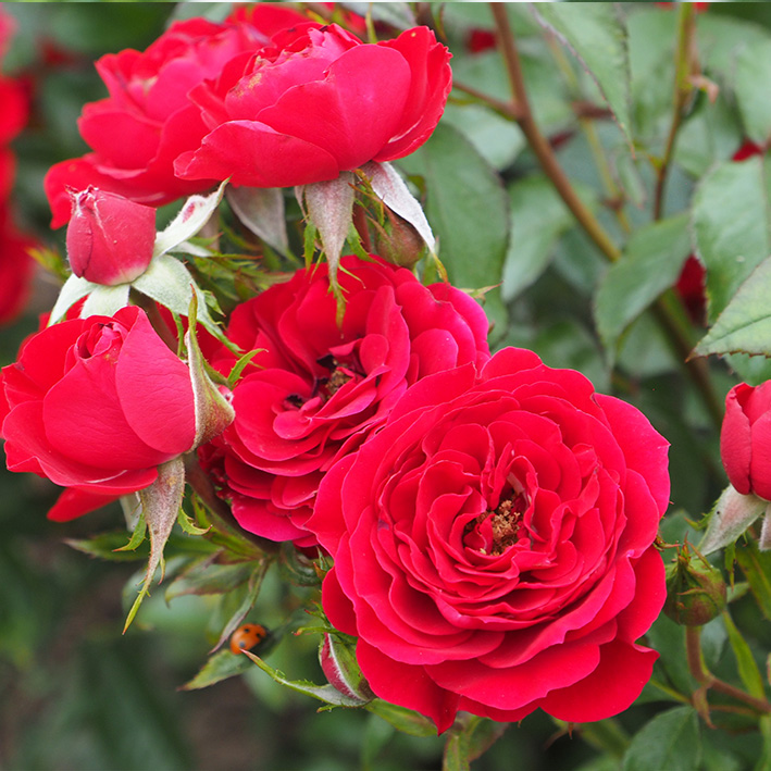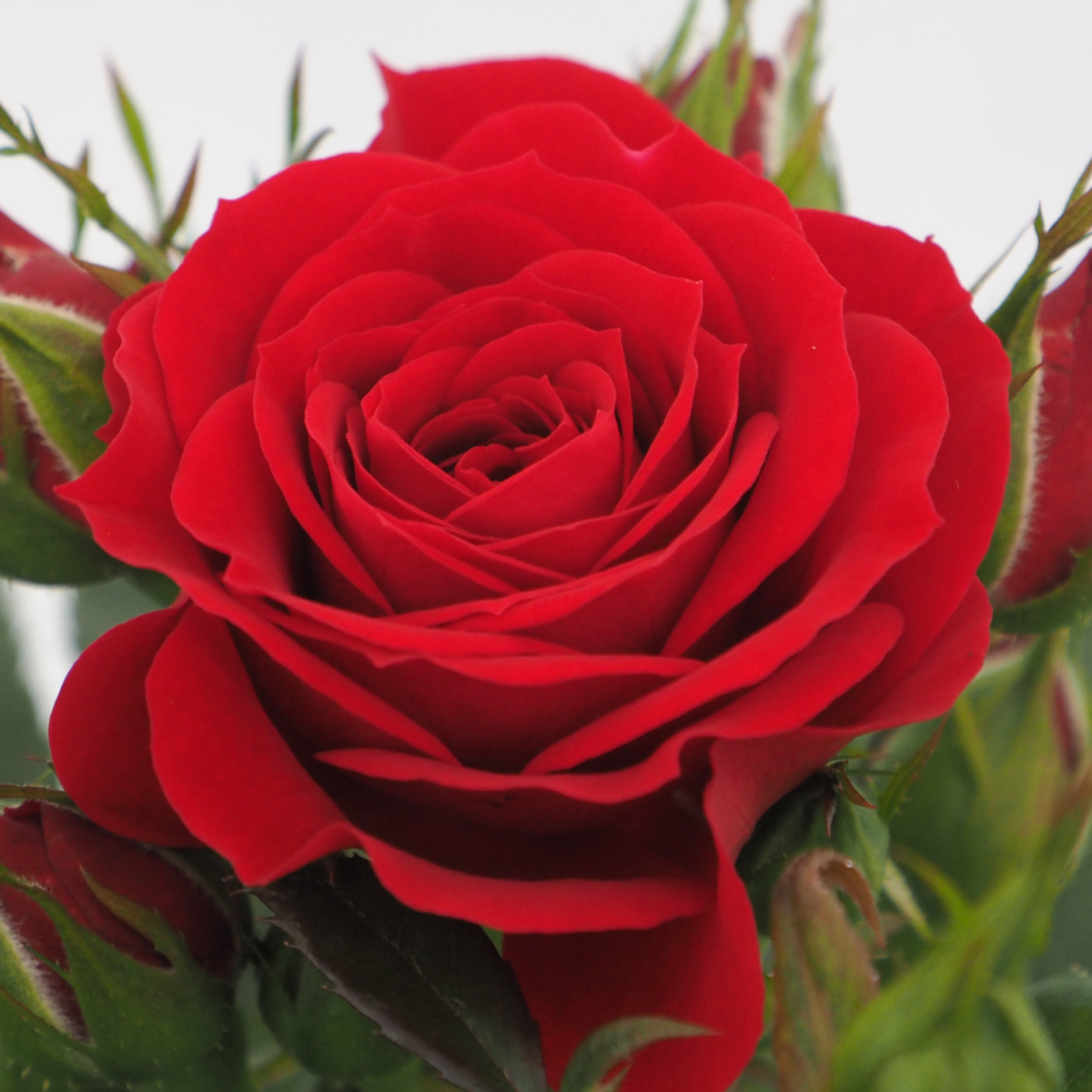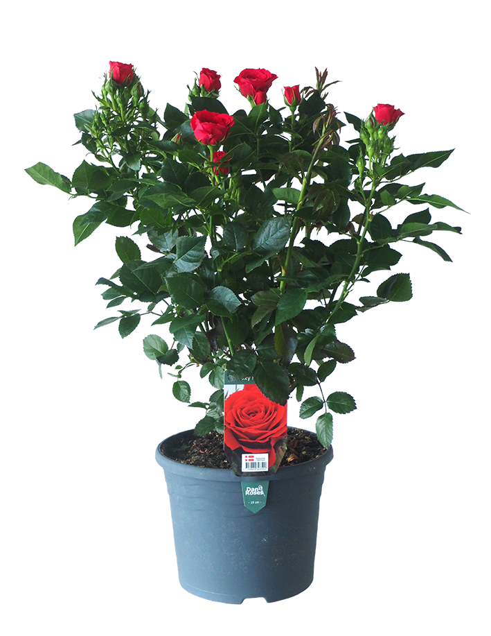 Blomst: Stor, smuk, fyldt, mørkerød.