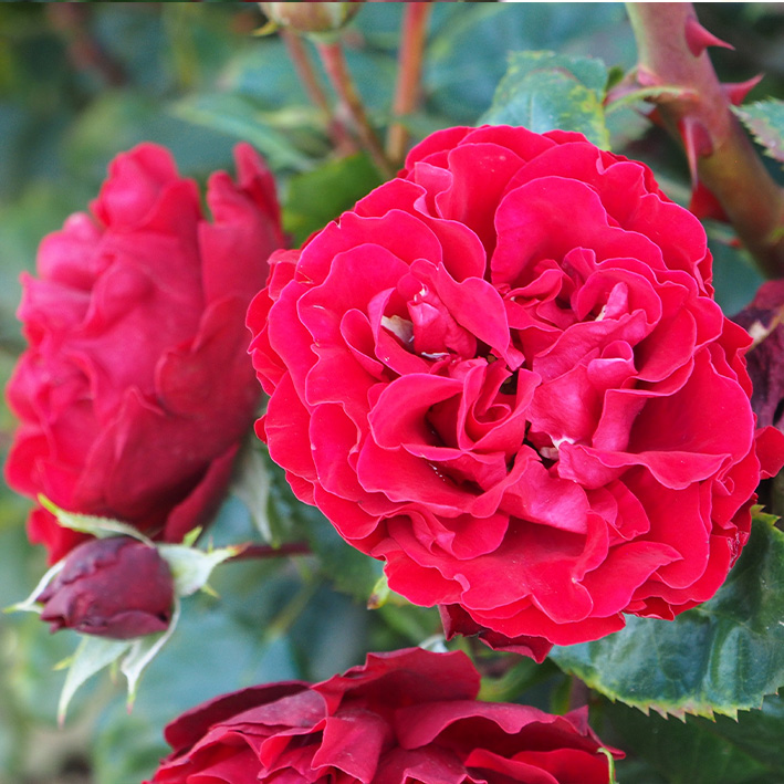 Blomst: Store, røde, tætfyldte og romantiske blomster.