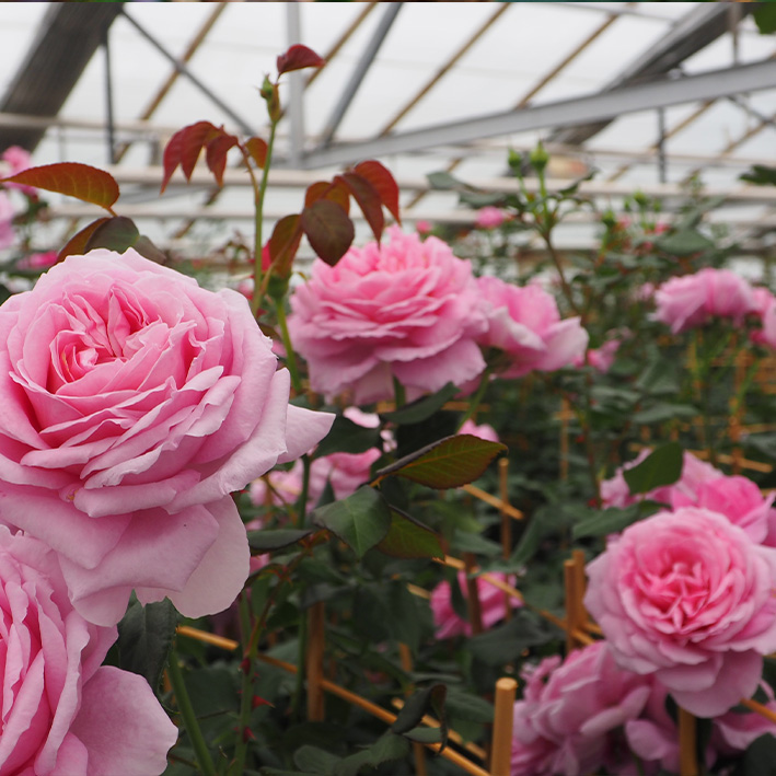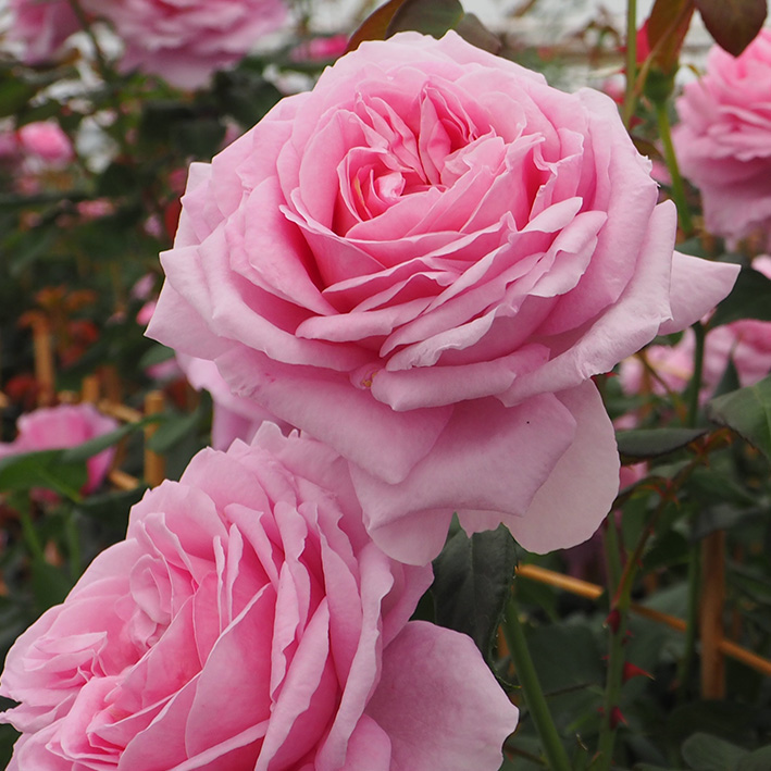Blomst: Store, fyldte, pink blomster med kraftig duft.